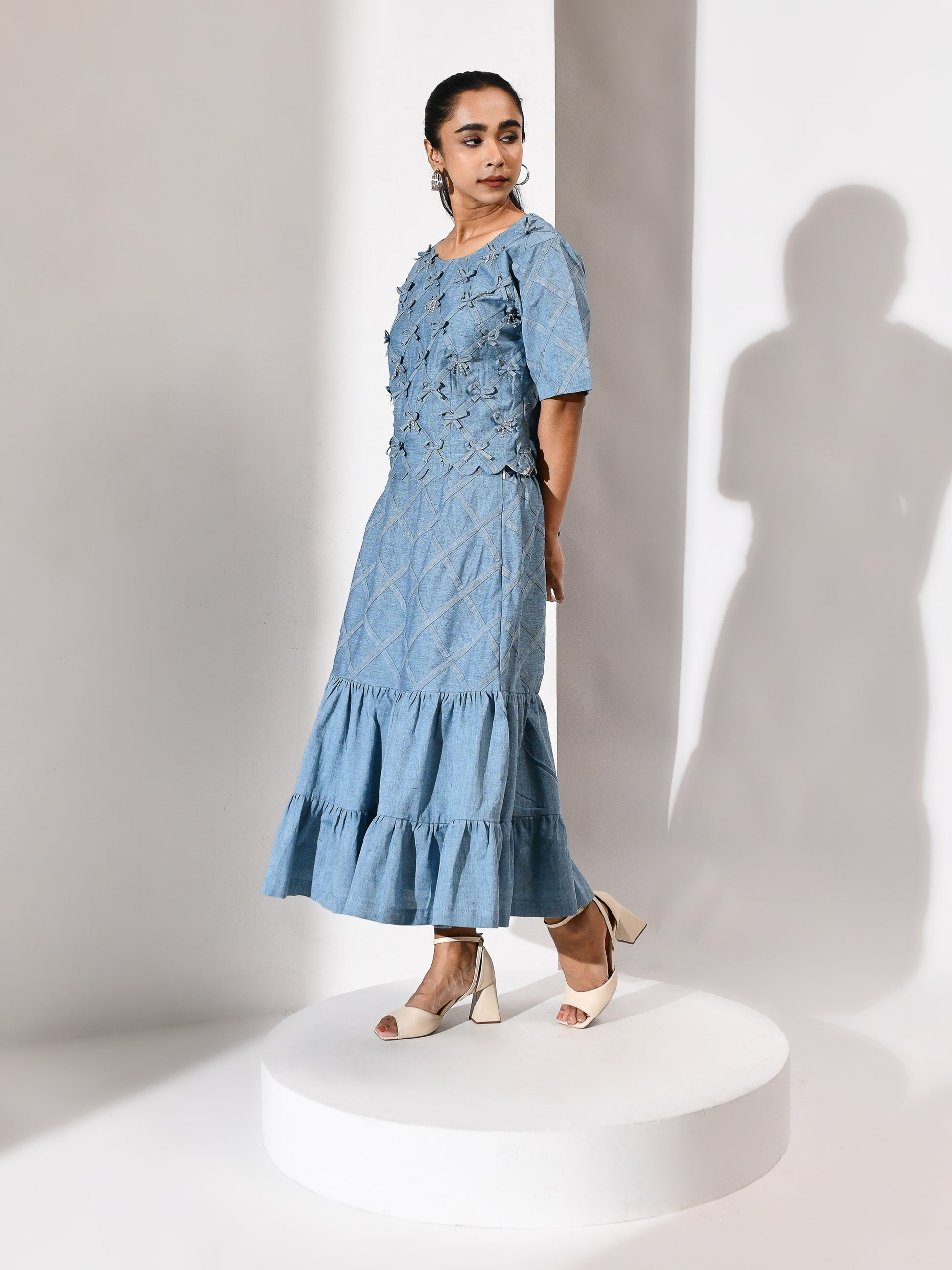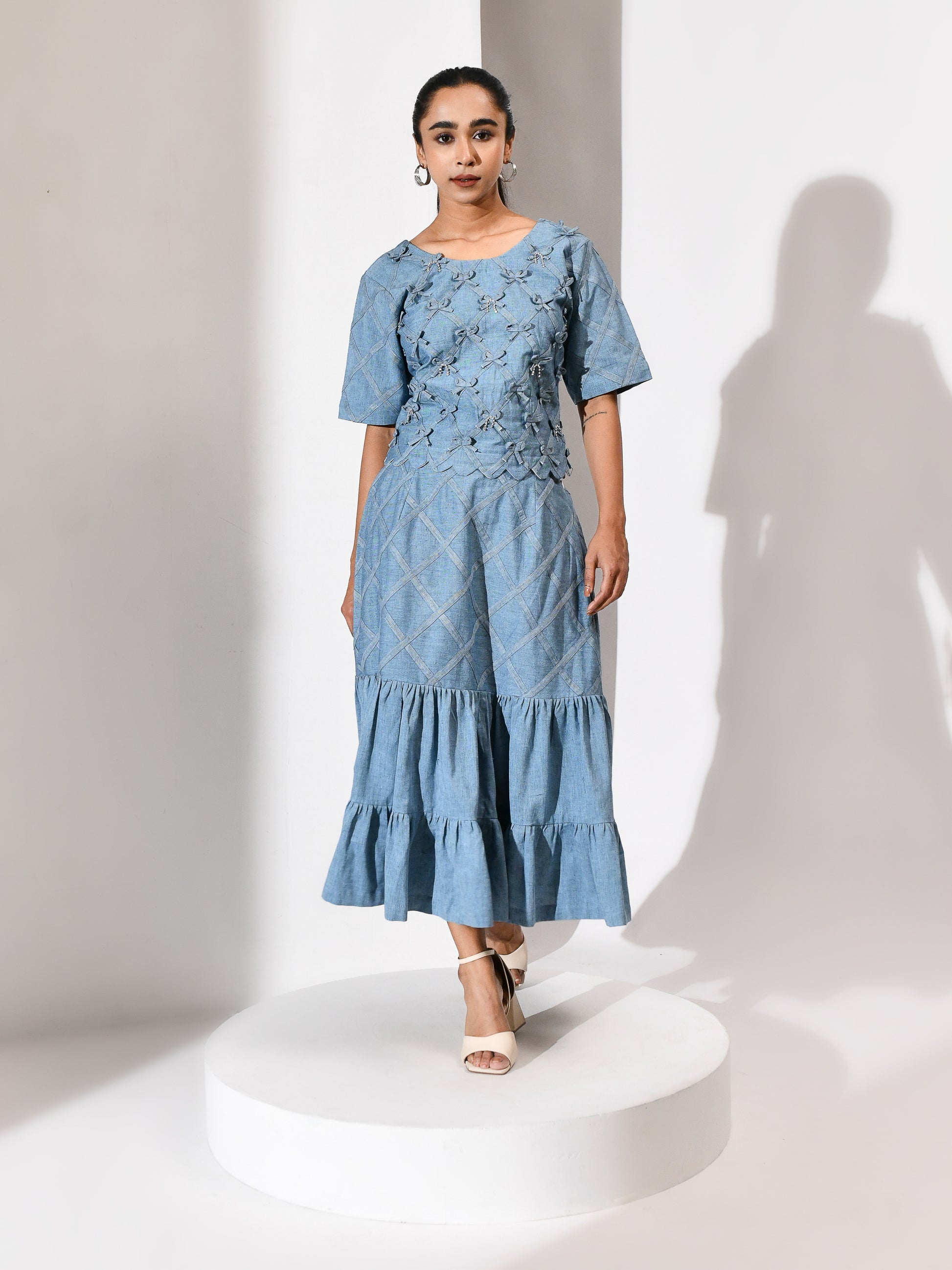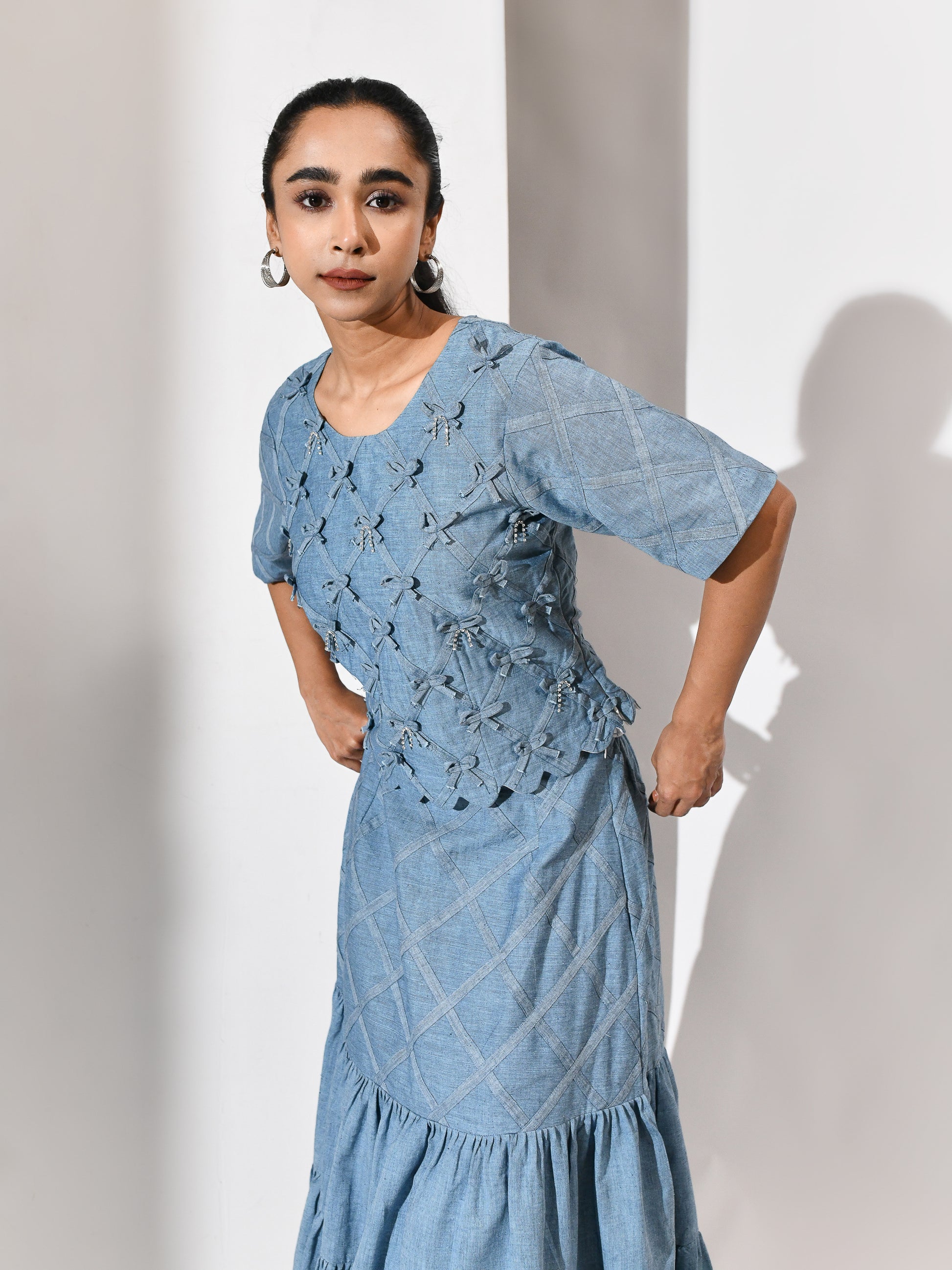 A quiet symphony of form and feeling. This skirt-top coordset is adorned with a delicate bow motif—each loop a gesture of softness, each tie a trace of intention. The silhouette speaks in hushed tones, balancing structure with sentiment. Tied Whisper invites intimacy: a design that doesn’t shout, but lingers.